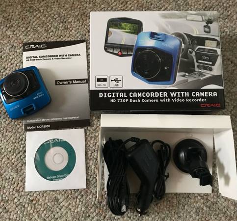 Digital Camcorder with Camera HD 720p Dash Camera w/Video Recorder New in box Built-in microphone and speaker Infrared night vision mode 2.4” LCD display Cash only.