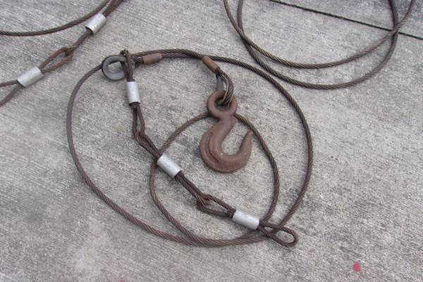Selling 3 steel cables 2 with large hook on end they are approx. 14 ft long can be used for towing, logging or any kind of lifting. If interested in any or all please make offer, thanks